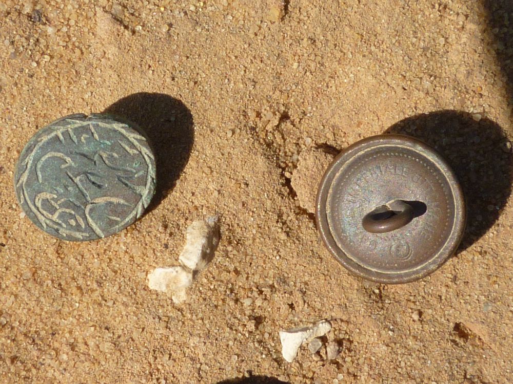 The following image shows a section of the trench we think was for communication and an exploratory sondage dug across it in the near view, with one of our detectorists investigating the forward edge of the trench outer wall. You can see that the trench itself is full of blown sand, which has to be removed to discover the original depth when used.